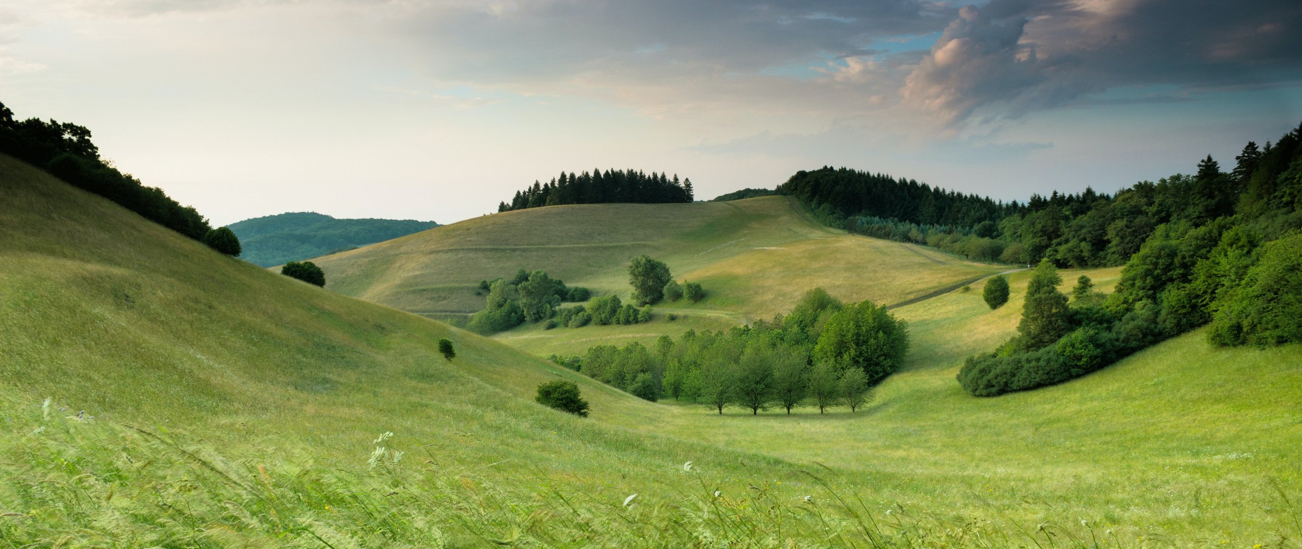 Wallpaper: landscape, field, hill - 2560x1080