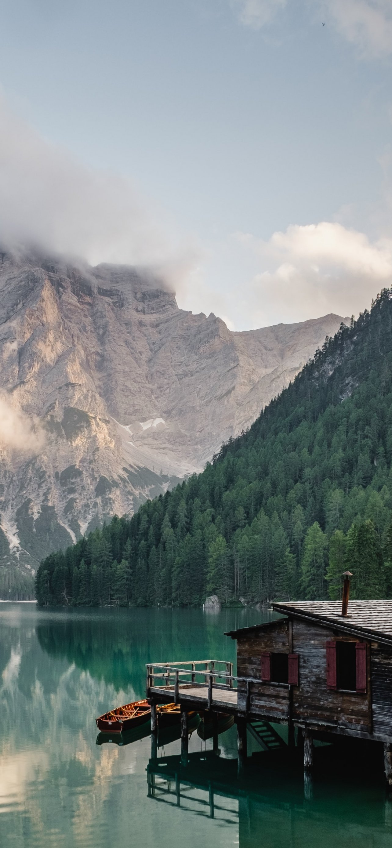 Wallpaper: Lake Braies, lake house, lake - 1284x2778