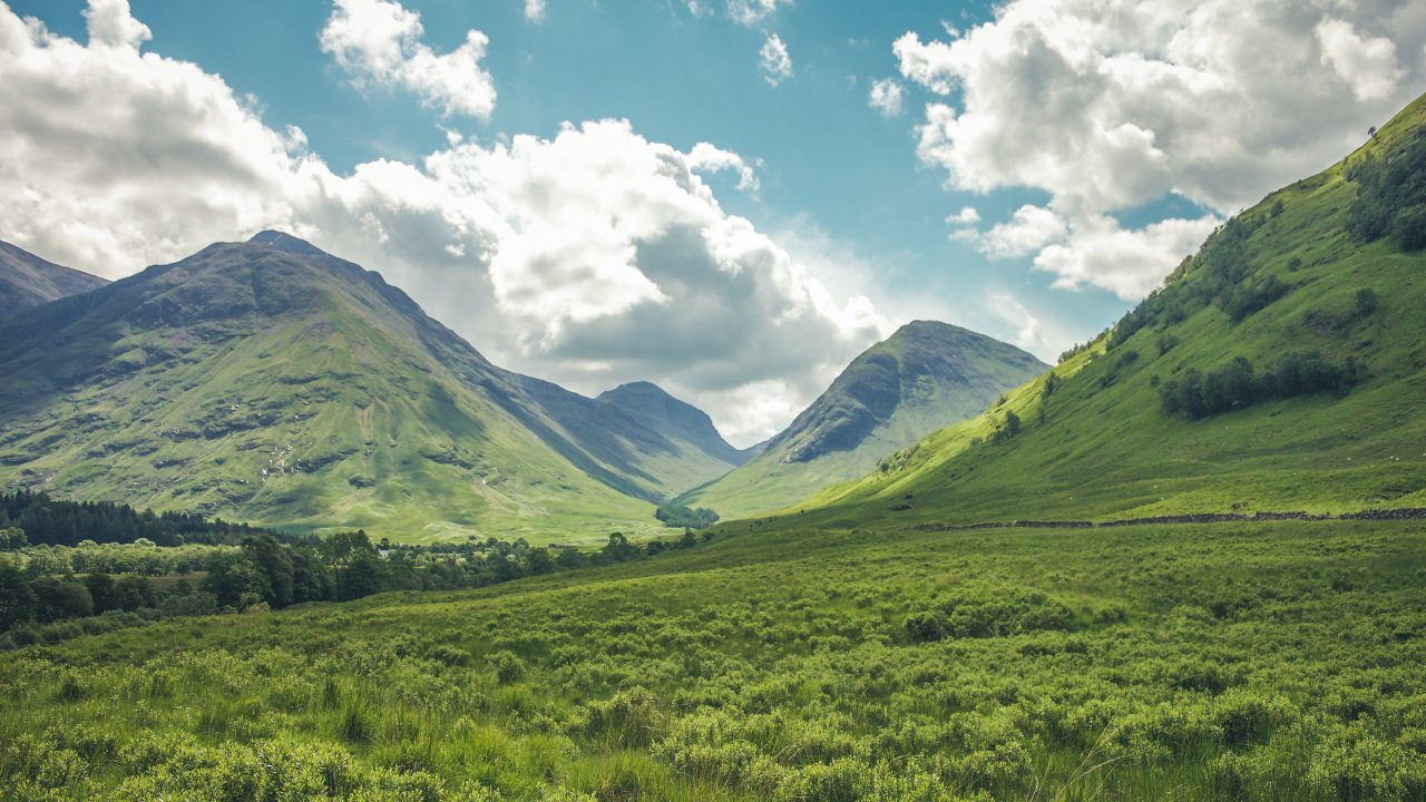 Wallpaper: valley, hills, Scotland - 1280x720