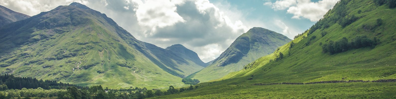 Wallpaper: valley, hills, Scotland - 1590x400