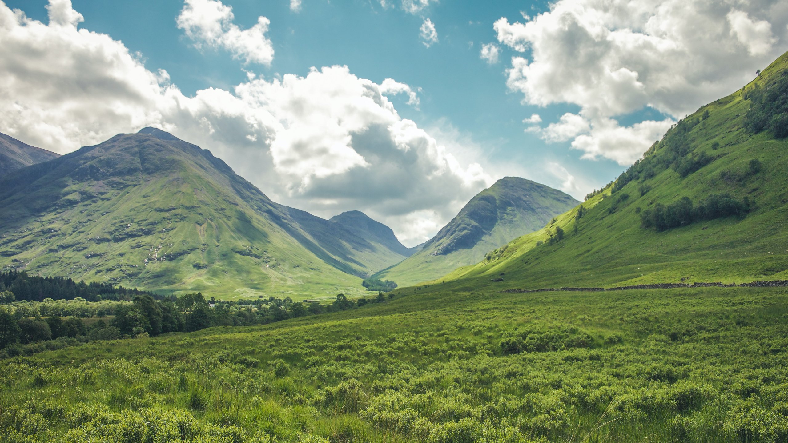 Wallpaper: valley, hills, Scotland - 2560x1440