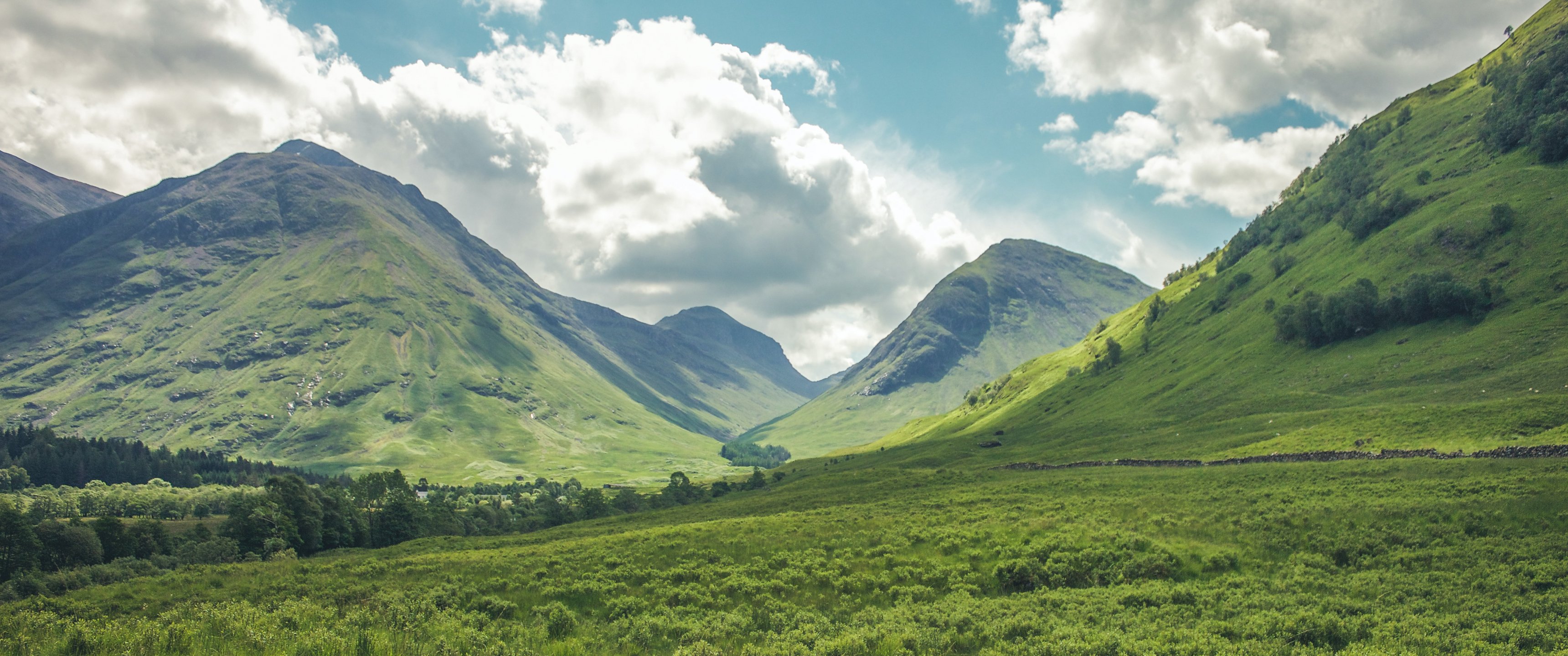 Wallpaper: valley, hills, Scotland - 3440x1440
