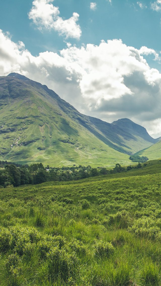 Wallpaper: valley, hills, Scotland - 640x1136