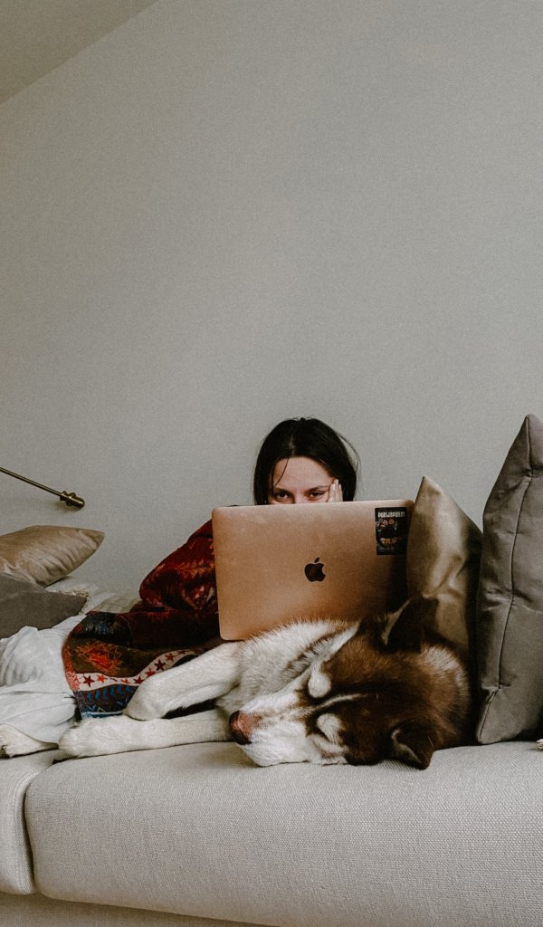 Wallpaper: girl, dog, on the couch - 600x1024