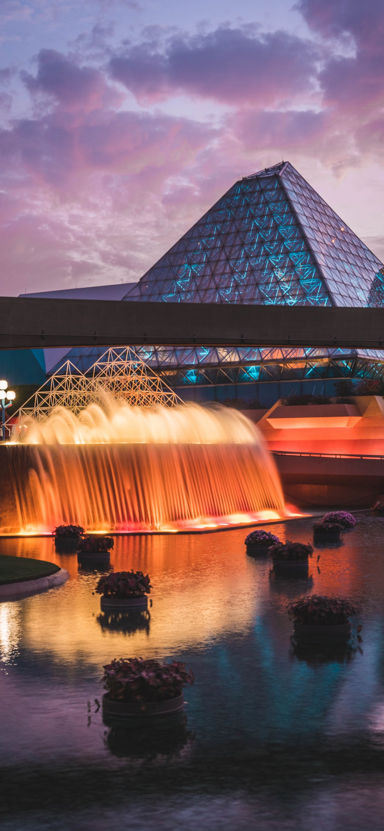Wallpaper: Epcot, fountain, evening - 1284x2778