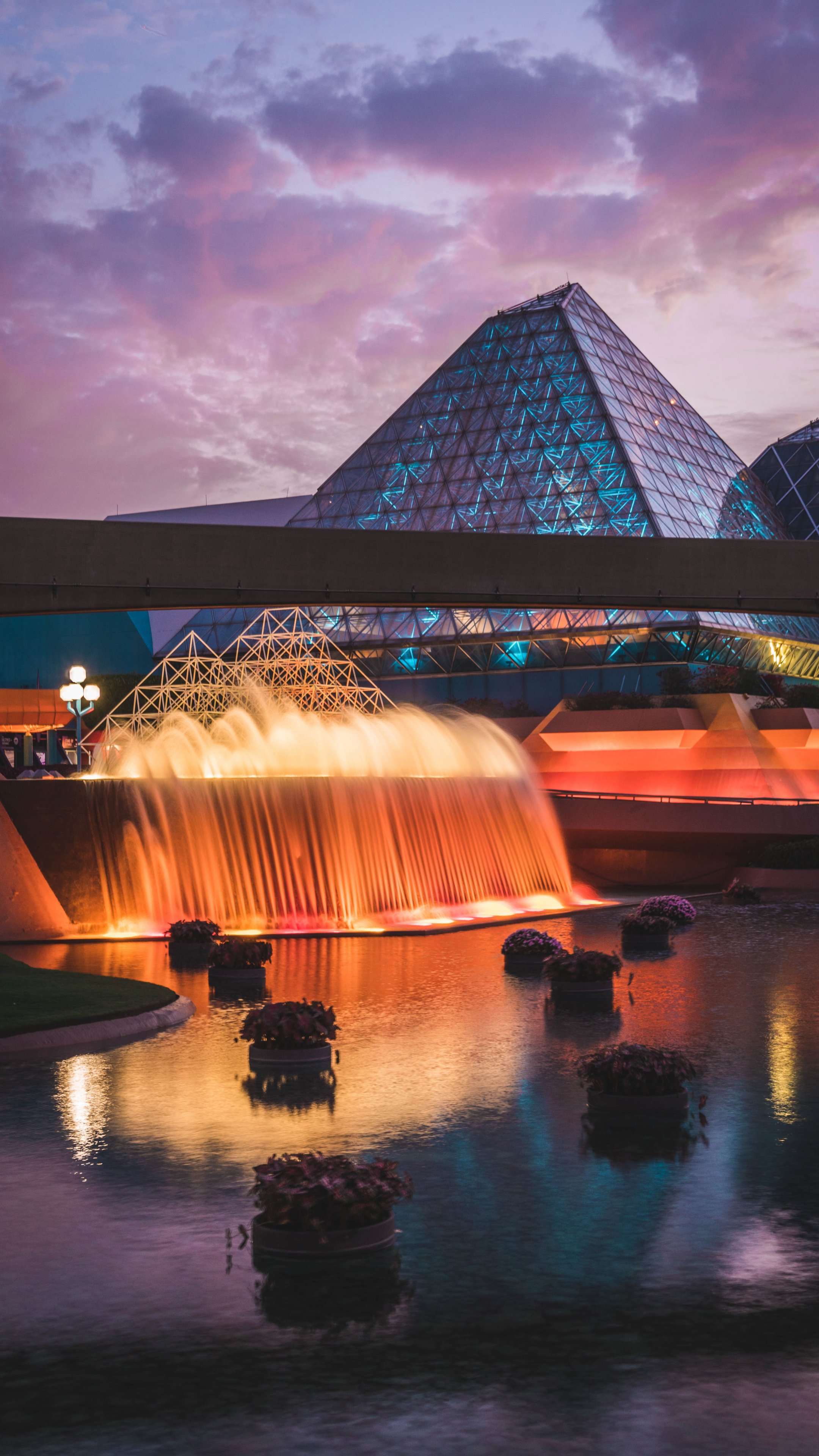 Wallpaper: Epcot, fountain, evening - 2160x3840