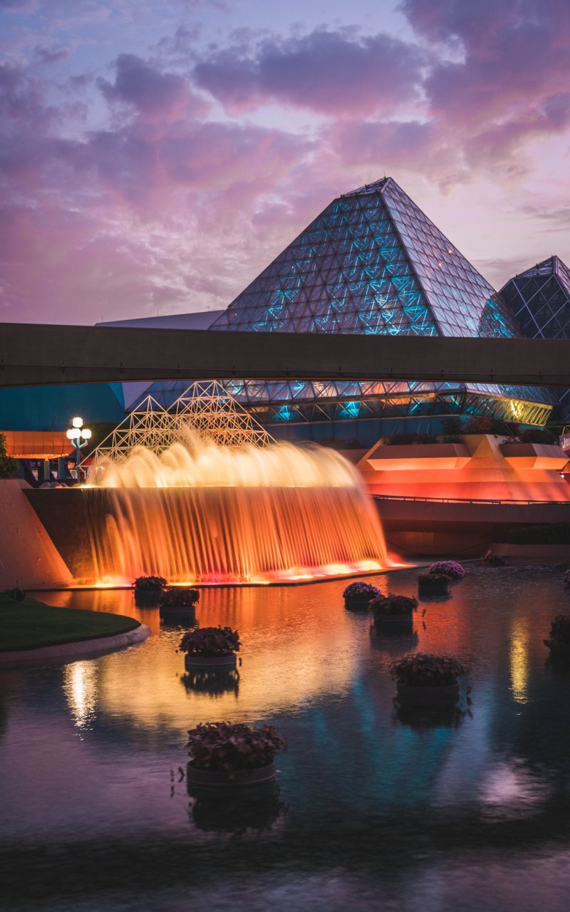 Wallpaper: Epcot, fountain, evening - 800x1280