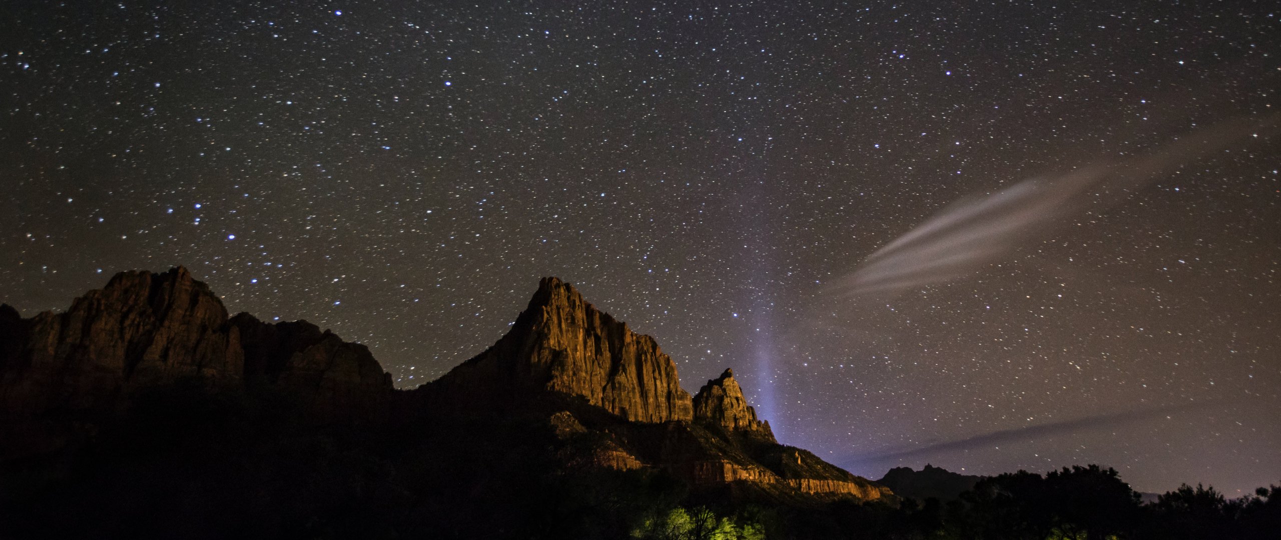 Wallpaper: night sky, mountains - 2560x1080