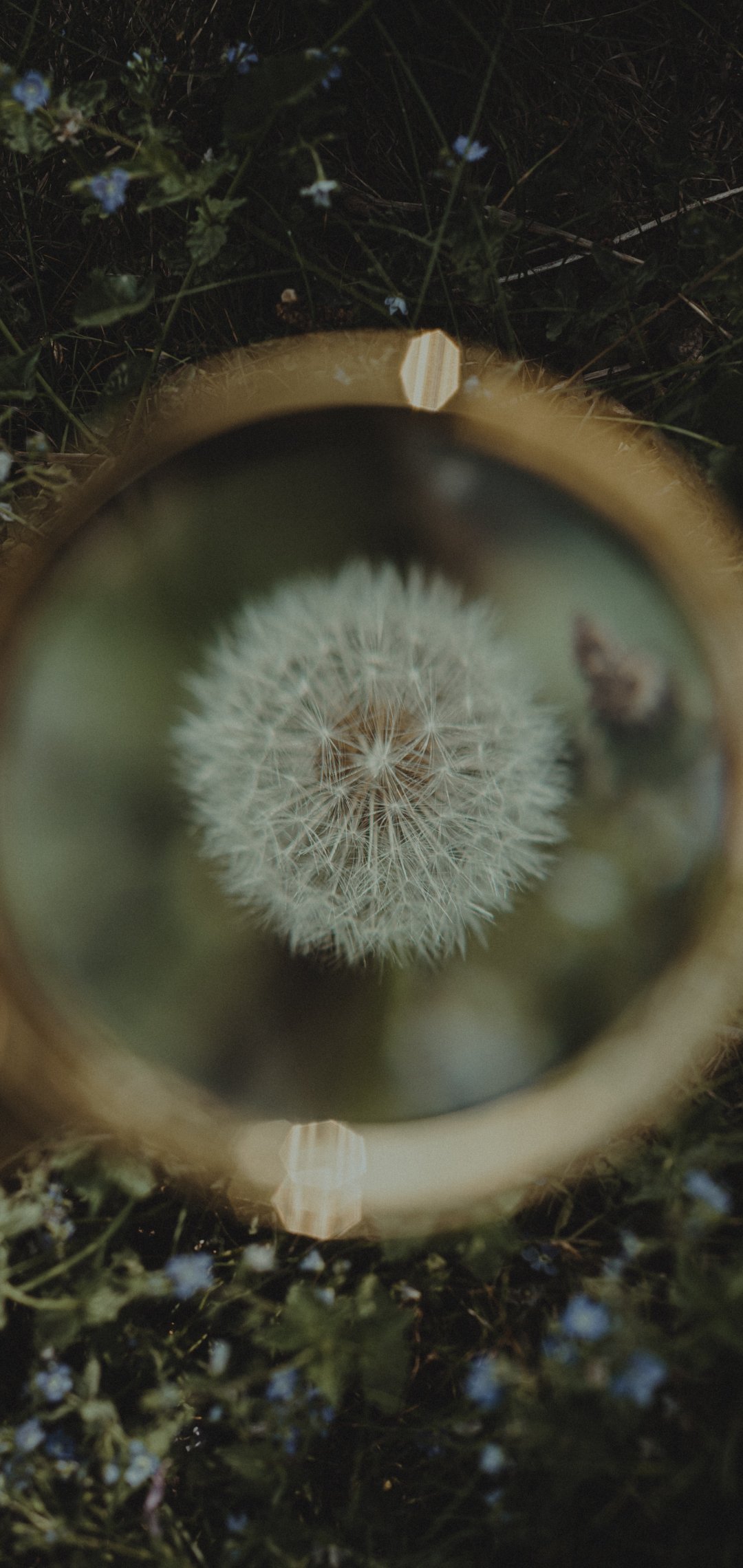 Wallpaper: dandelion under magnifying glass - 1080x2280