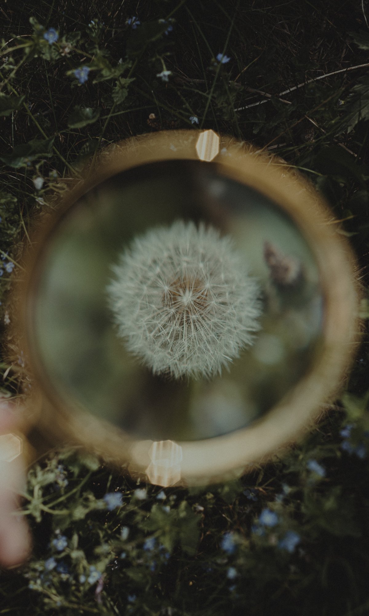 Wallpaper: dandelion under magnifying glass - 1200x2000