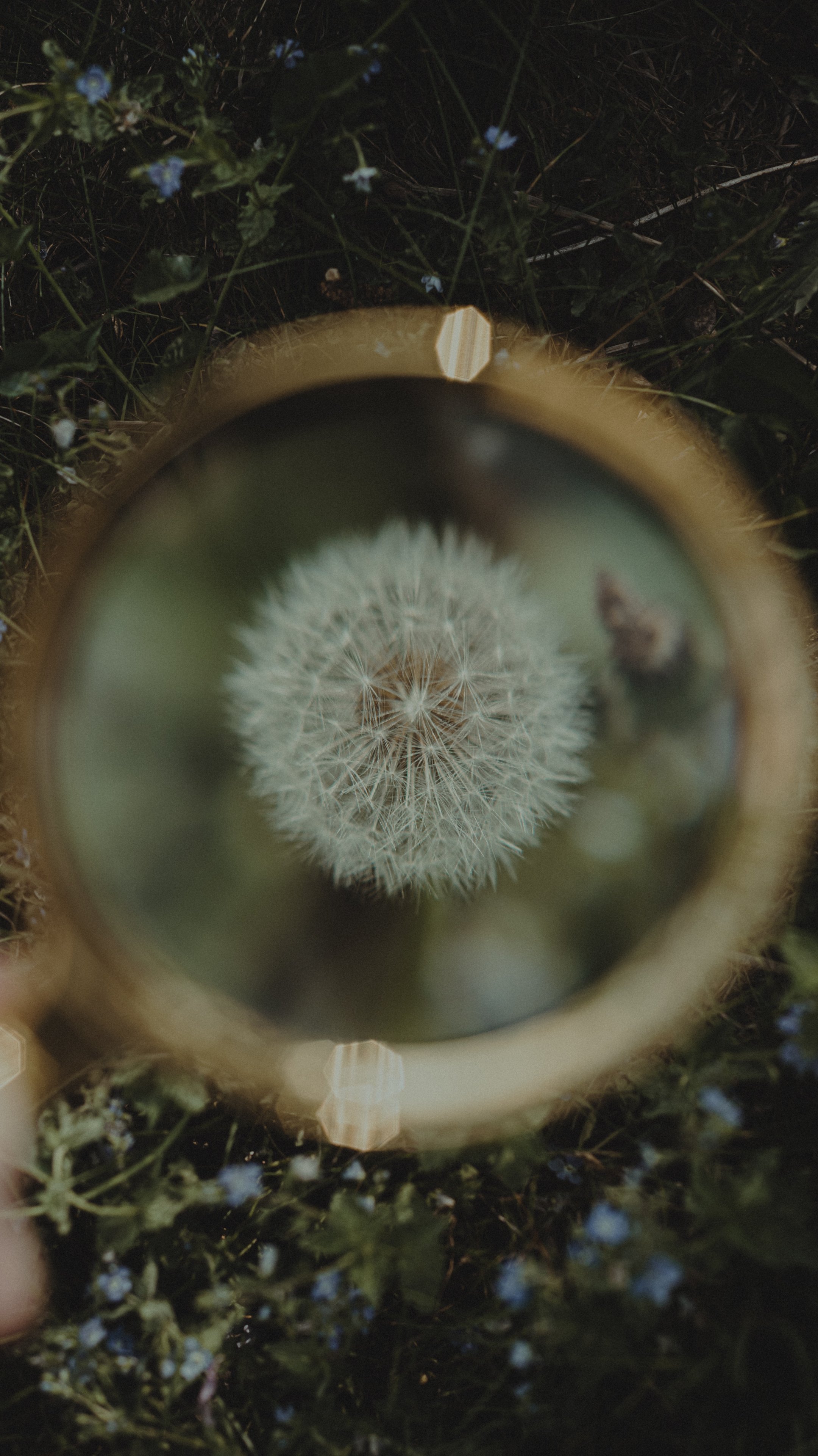 Wallpaper: dandelion under magnifying glass - 2160x3840