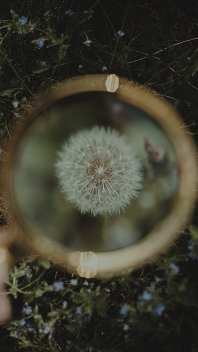 Wallpaper: dandelion under magnifying glass - 640x1136