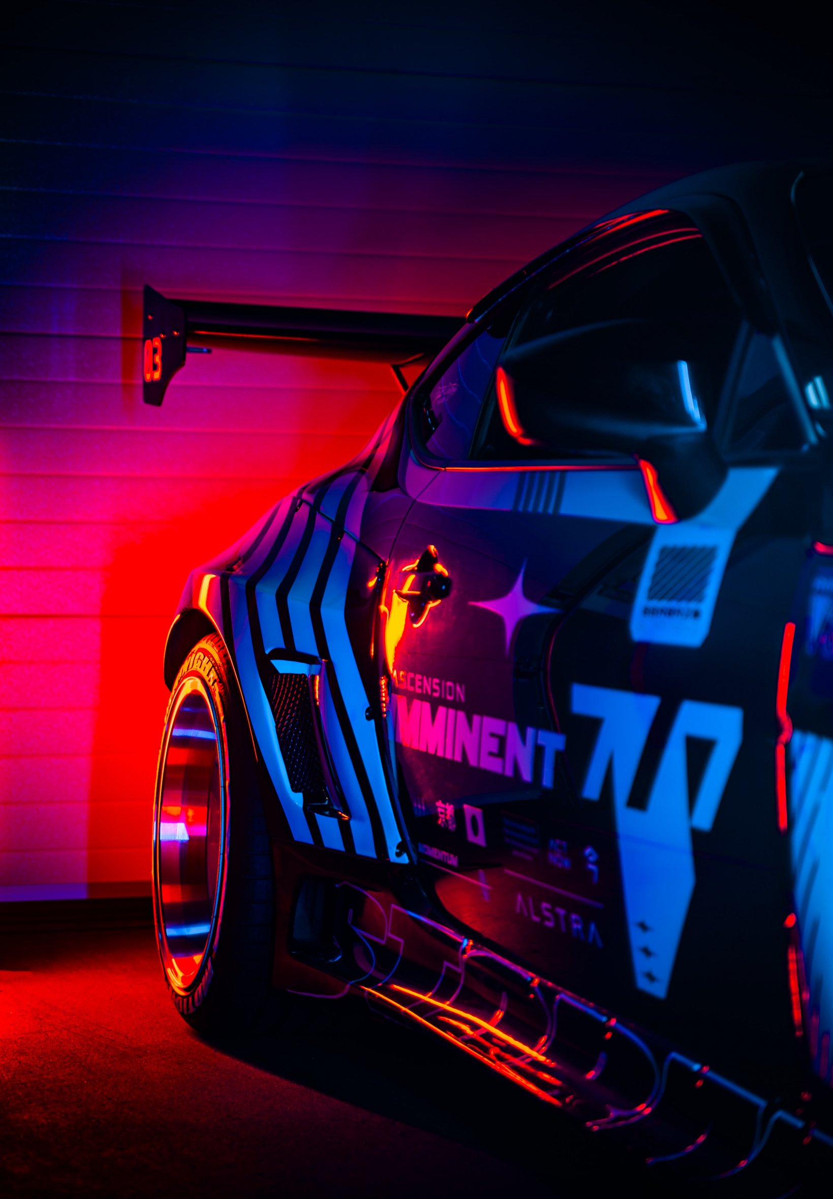 race car, sports car, night