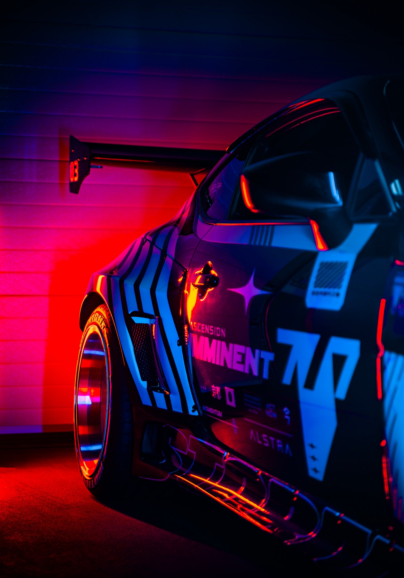 race car, sports car, night