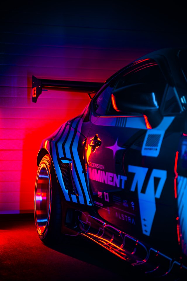 race car, sports car, night