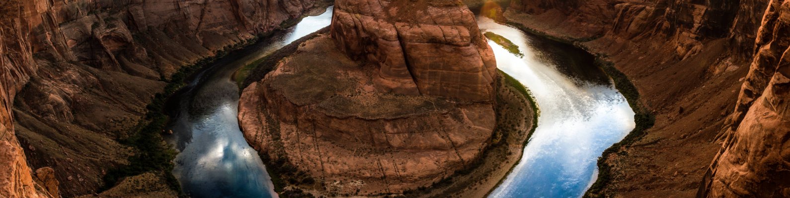 Wallpaper: canyon, landscape, sunset - 1590x400