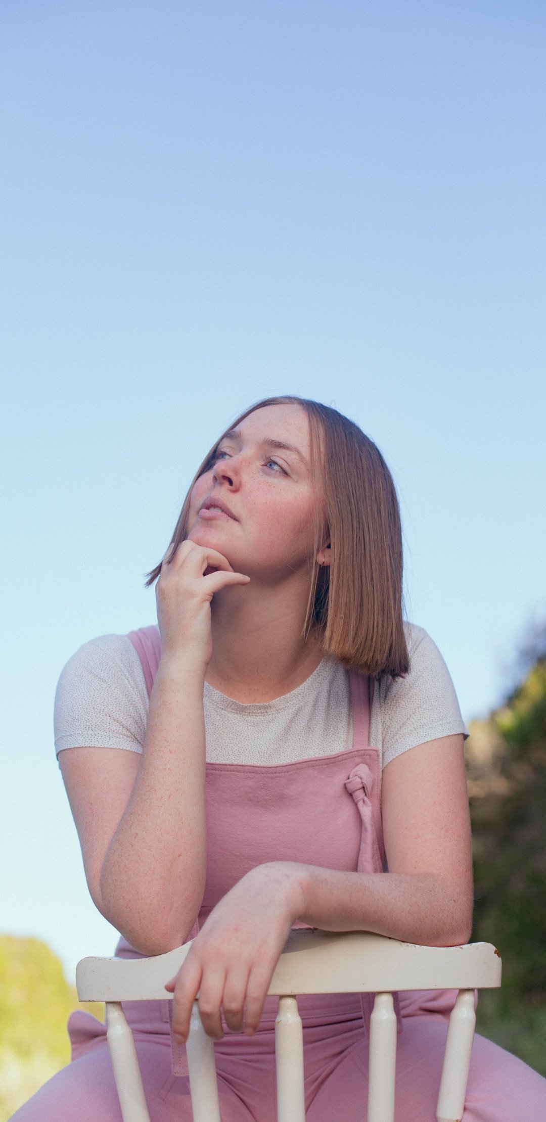 Wallpaper: girl on chair - 1080x2220