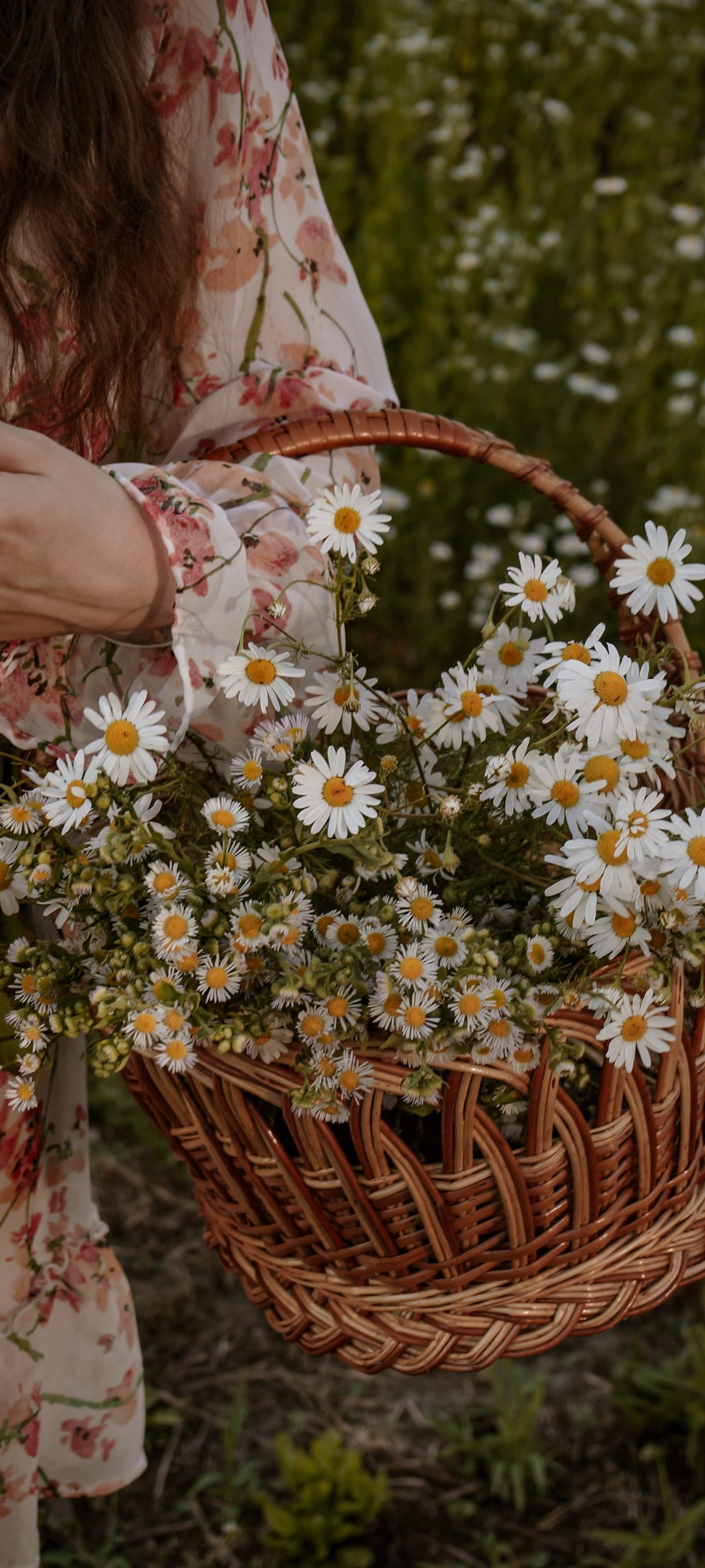 Wallpaper: basket of daisies - 1080x2400