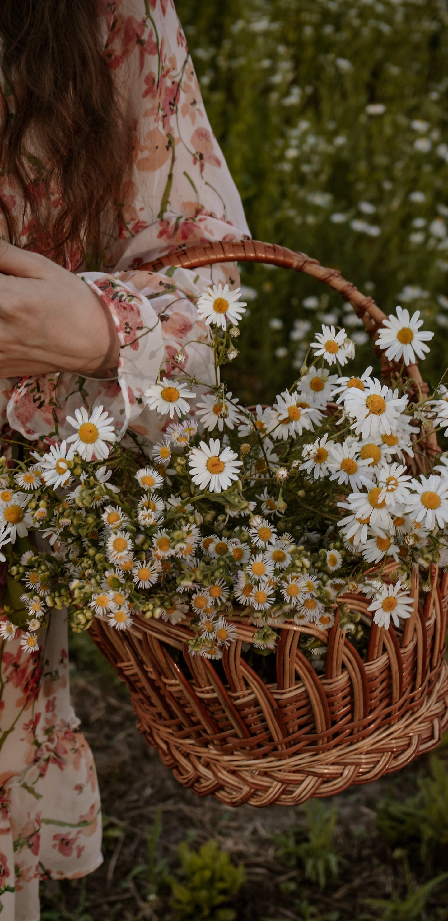 Wallpaper: basket of daisies - 1440x2960