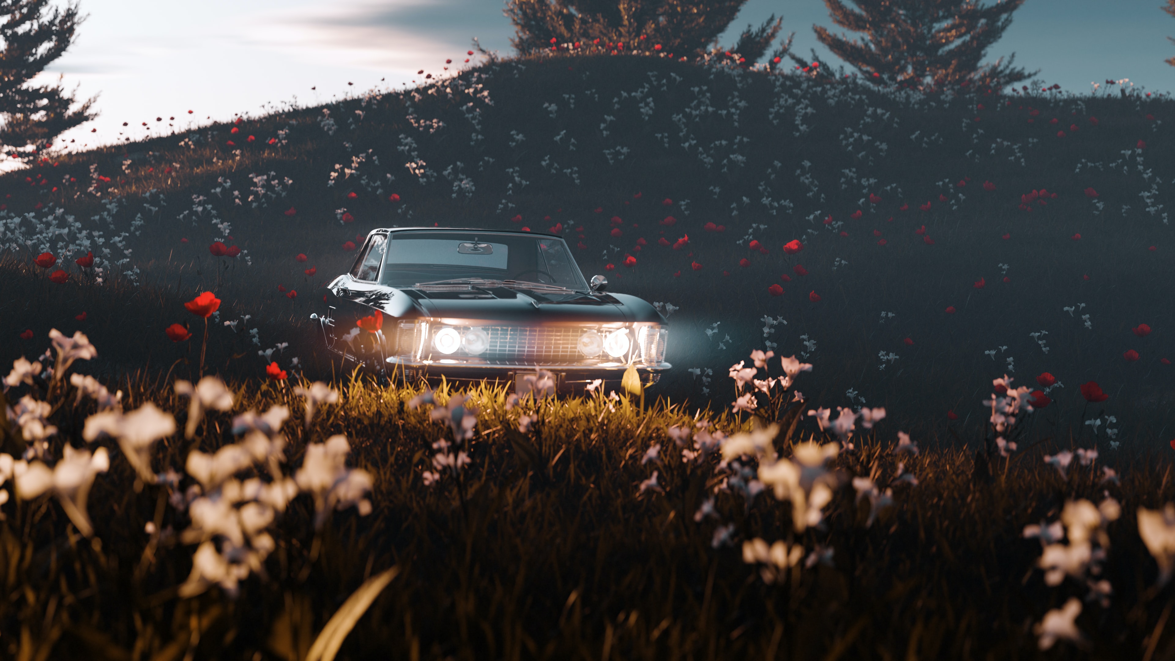 Wallpaper: flowering field, machine - 3840x2160