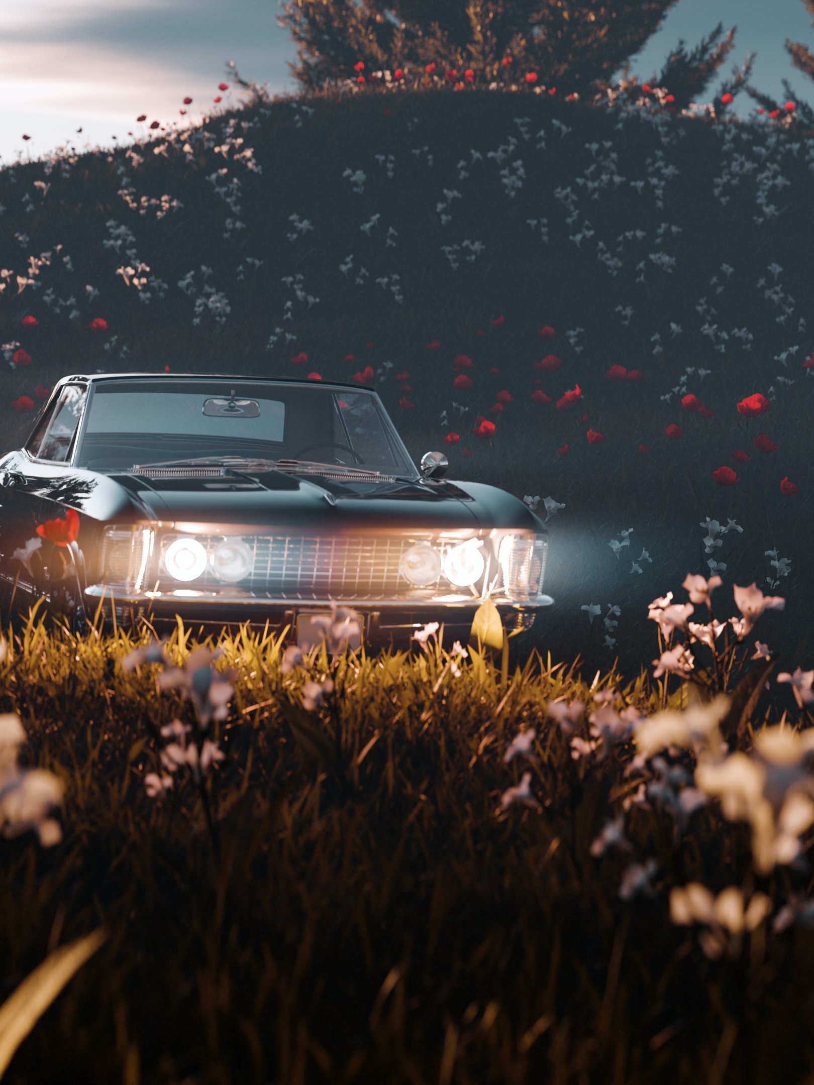 Wallpaper: flowering field, machine - 1620x2160