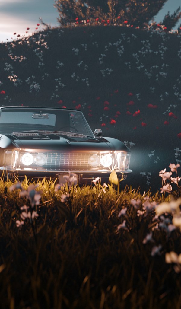 Wallpaper: flowering field, machine - 600x1024