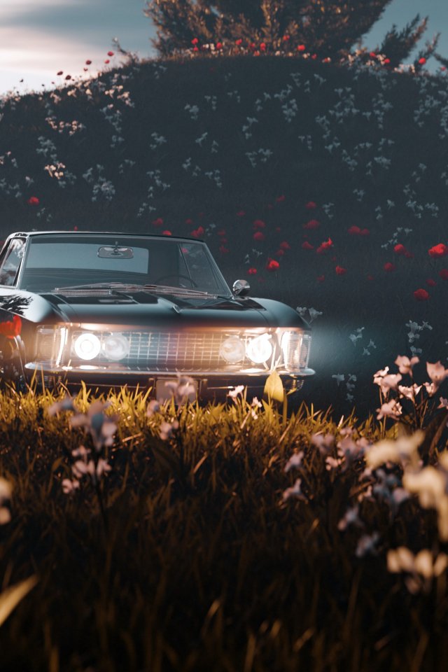 Wallpaper: flowering field, machine - 640x960