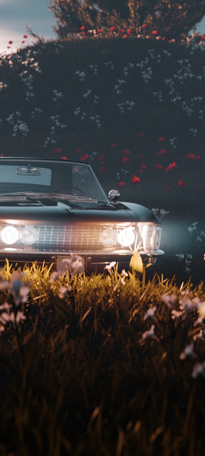 Wallpaper: flowering field, machine - 720x1600