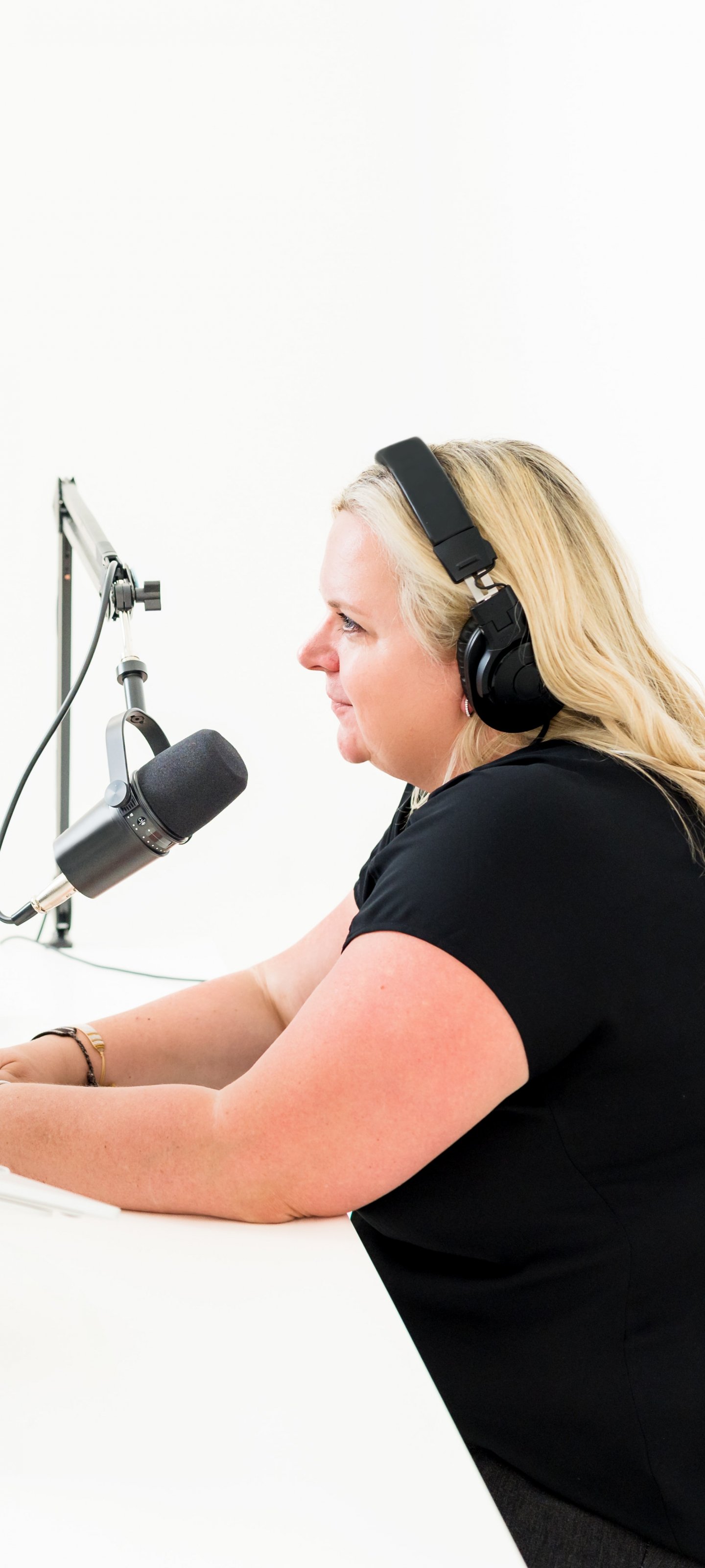 Wallpaper: woman behind the microphone - 1440x3200