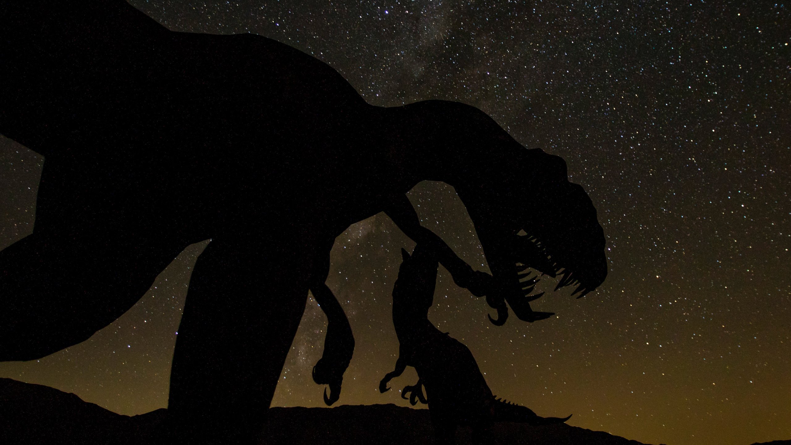 Wallpaper: dinosaur, starry sky - 2560x1440