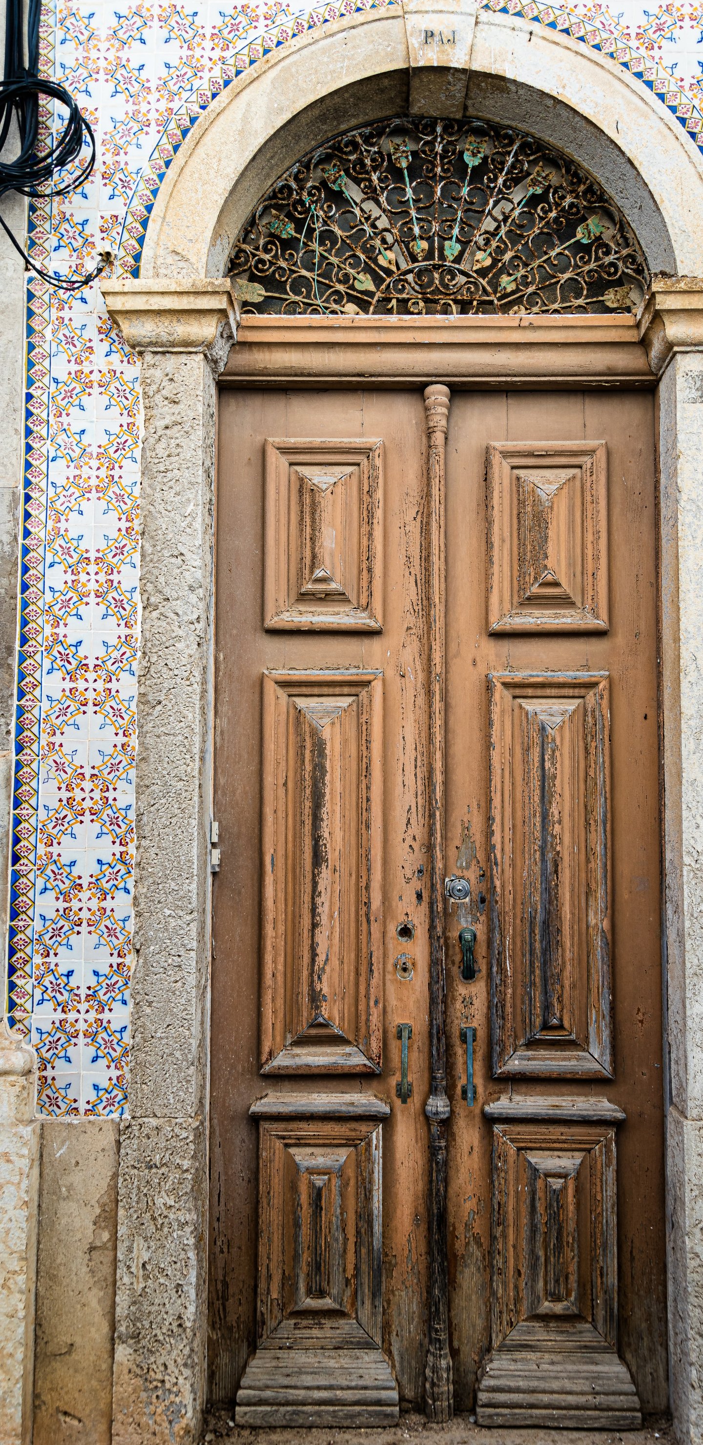 Wallpaper: Ferragudo, Portugal, door - 1440x2960