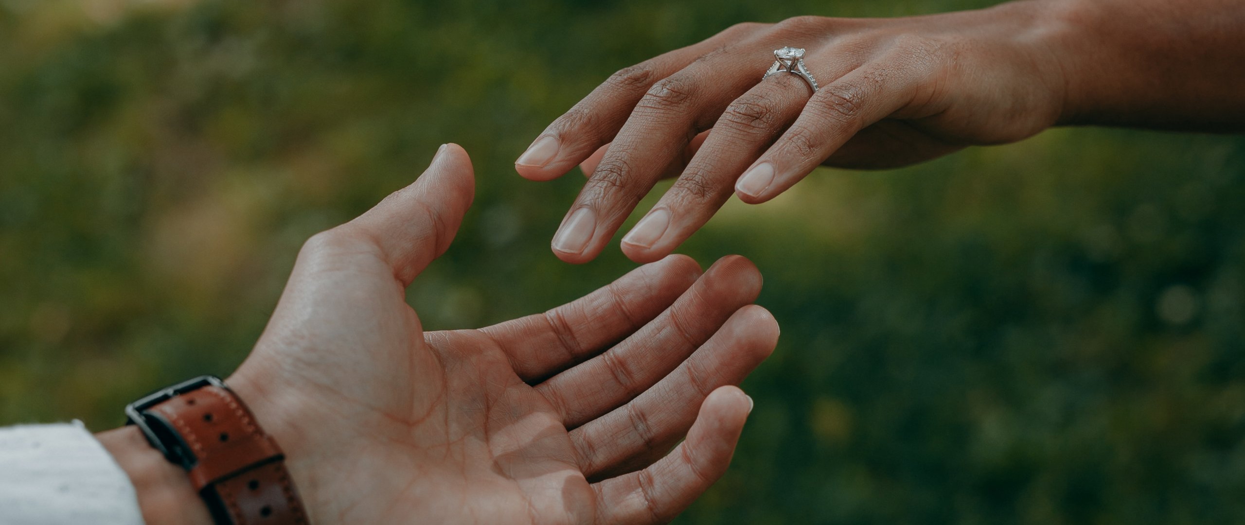 Wallpaper: male and female hand - 2560x1080
