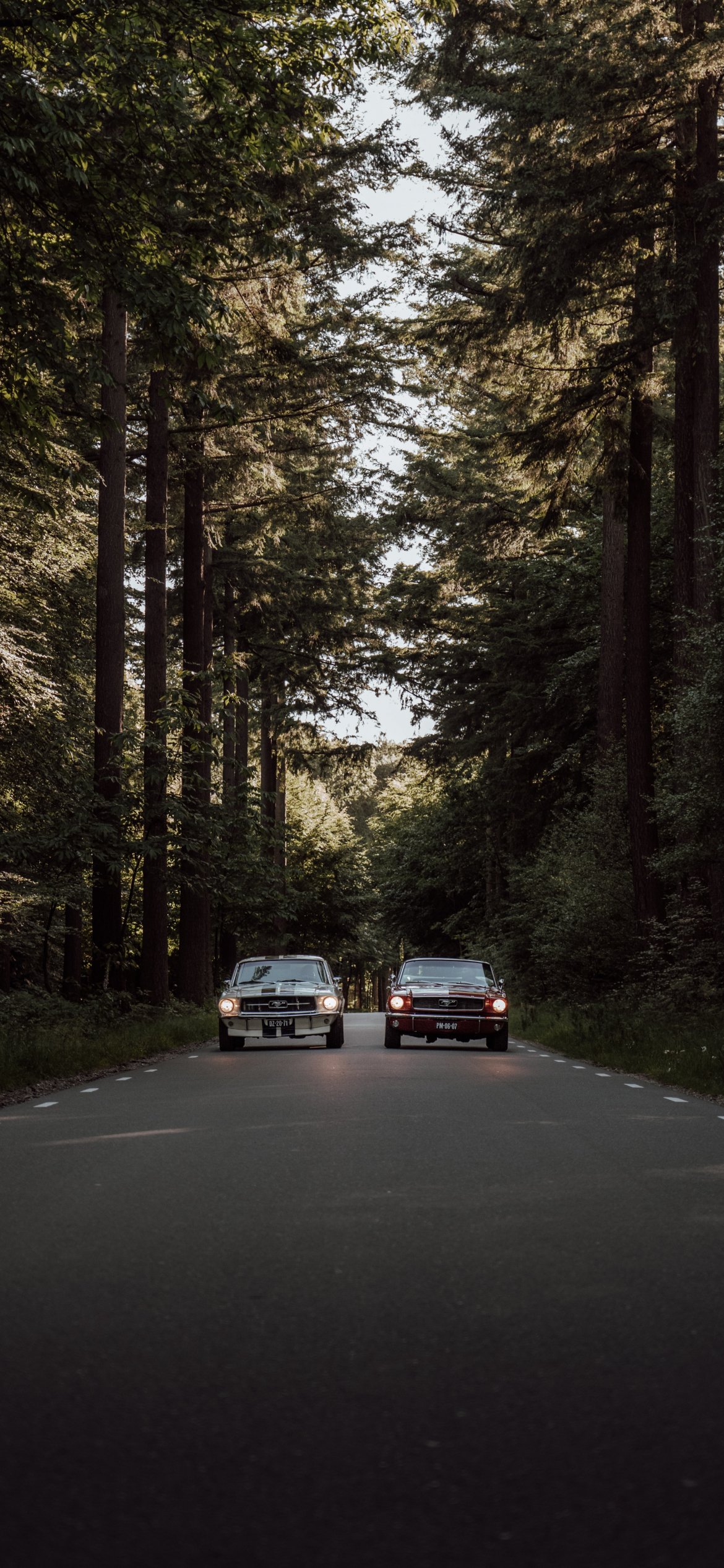 Wallpaper: cars in the forest - 1170x2532