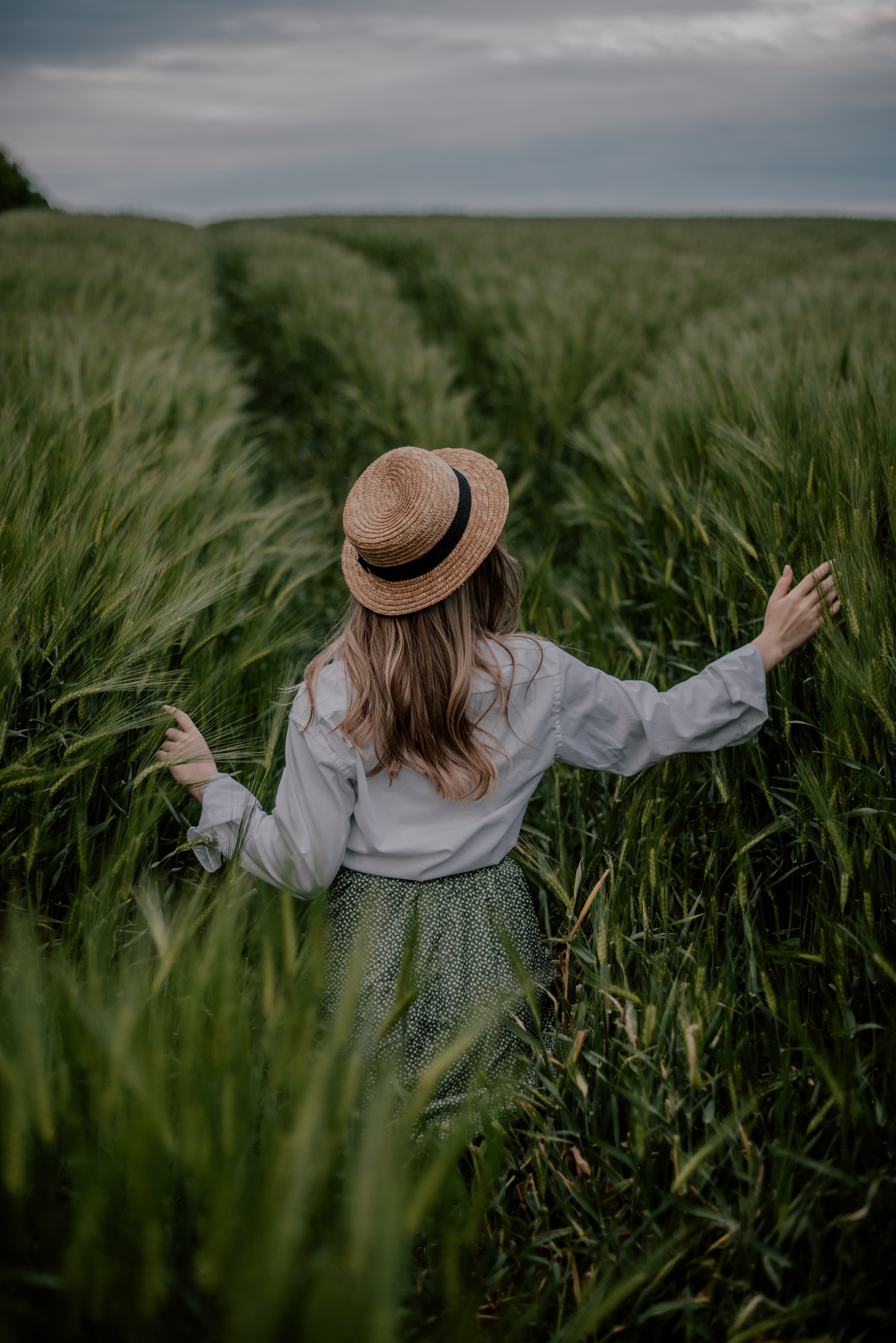 Wallpaper: field, girl in a hat - 3867x5793