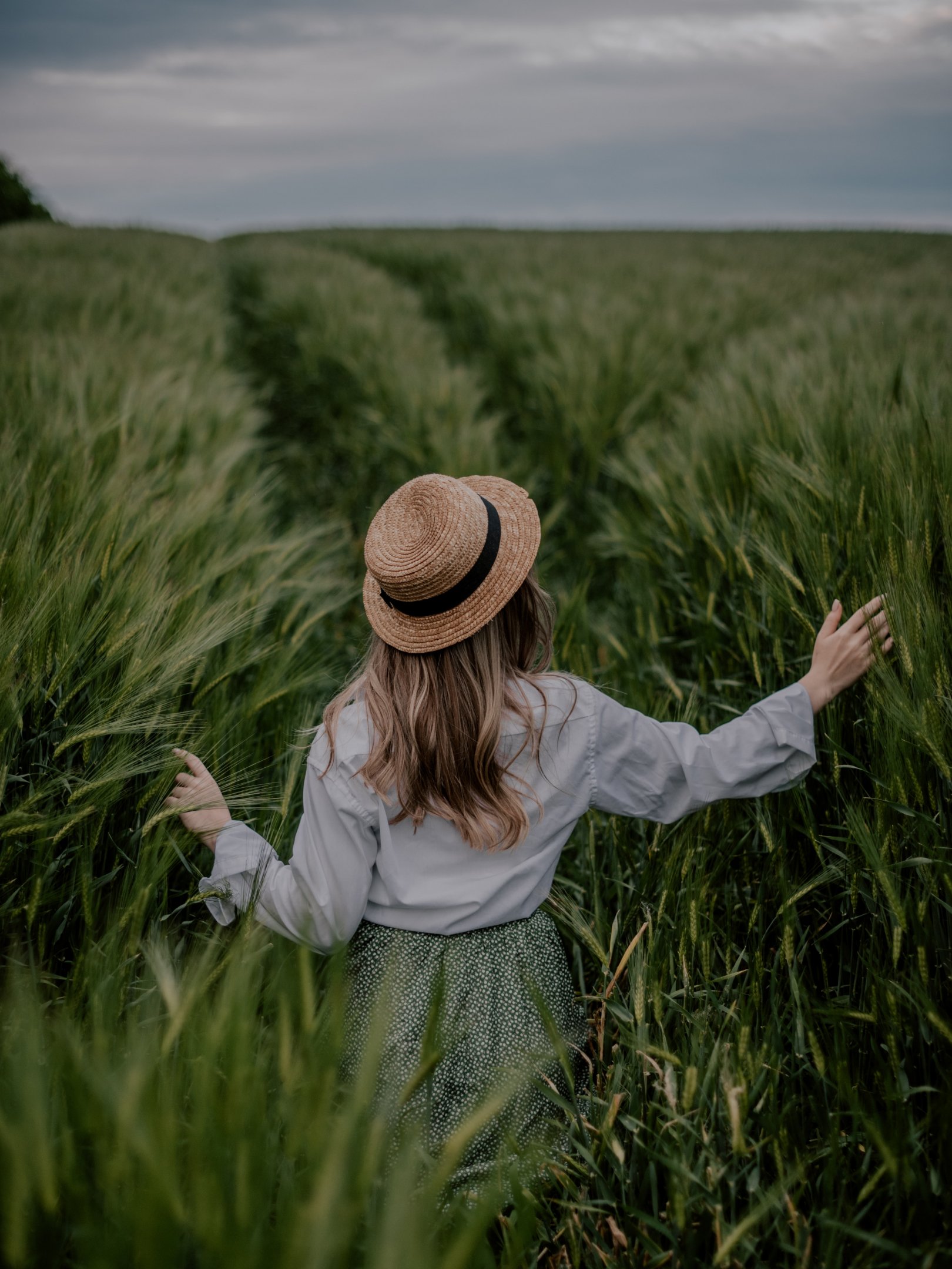 Wallpaper: field, girl in a hat - 1620x2160