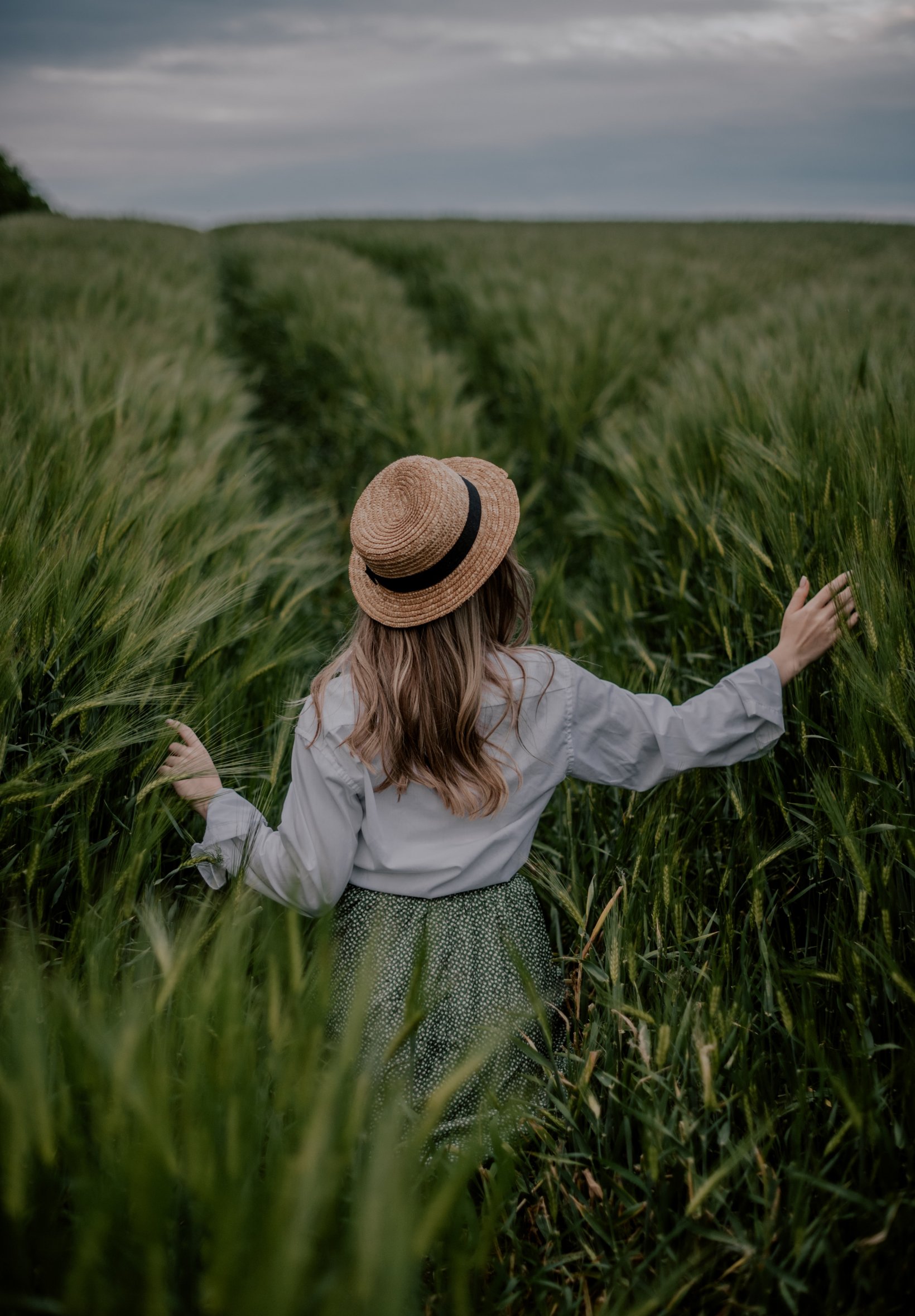 Wallpaper: field, girl in a hat - 1640x2360