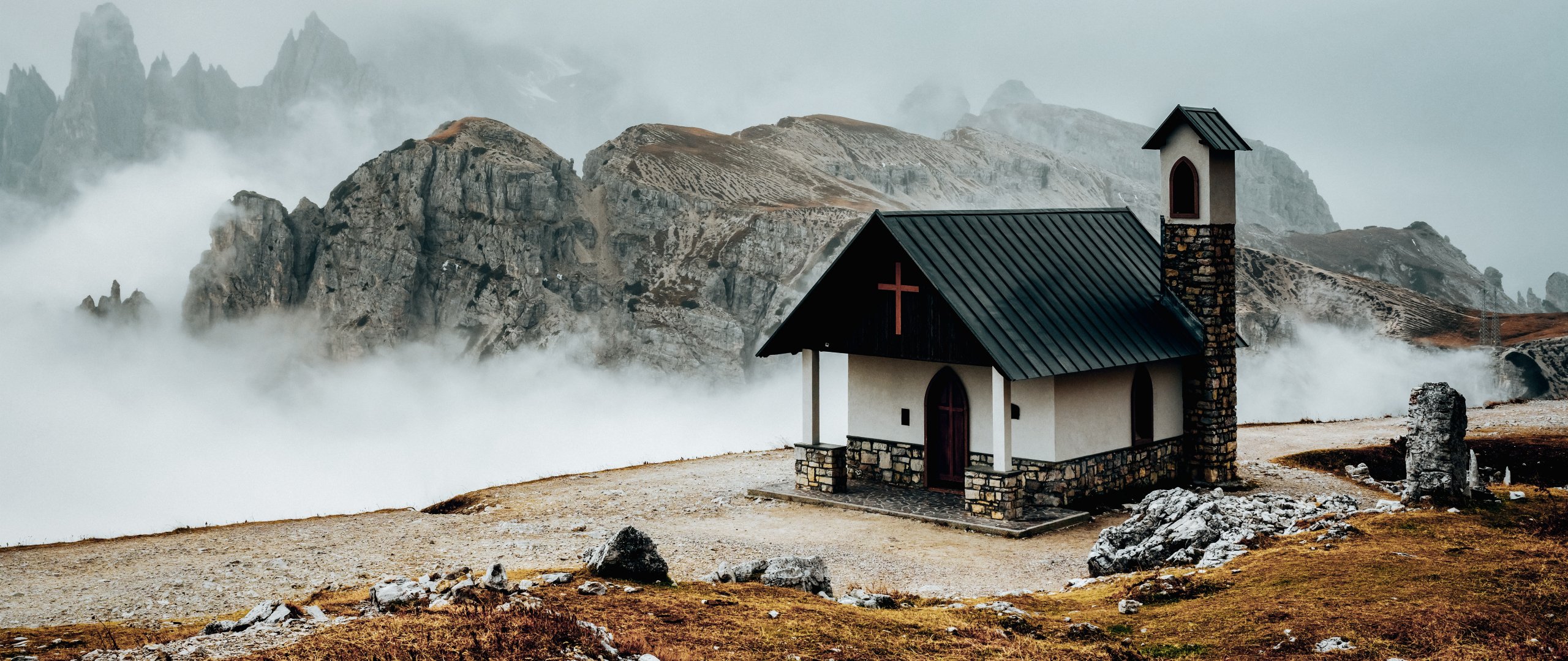 Wallpaper: church, in the mountains - 2560x1080