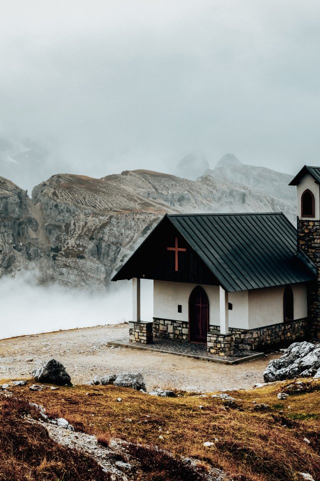 Wallpaper: church, in the mountains - 640x960