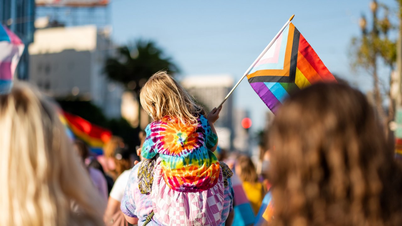 Wallpaper: holiday, girl on dad's shoulders - 1280x720