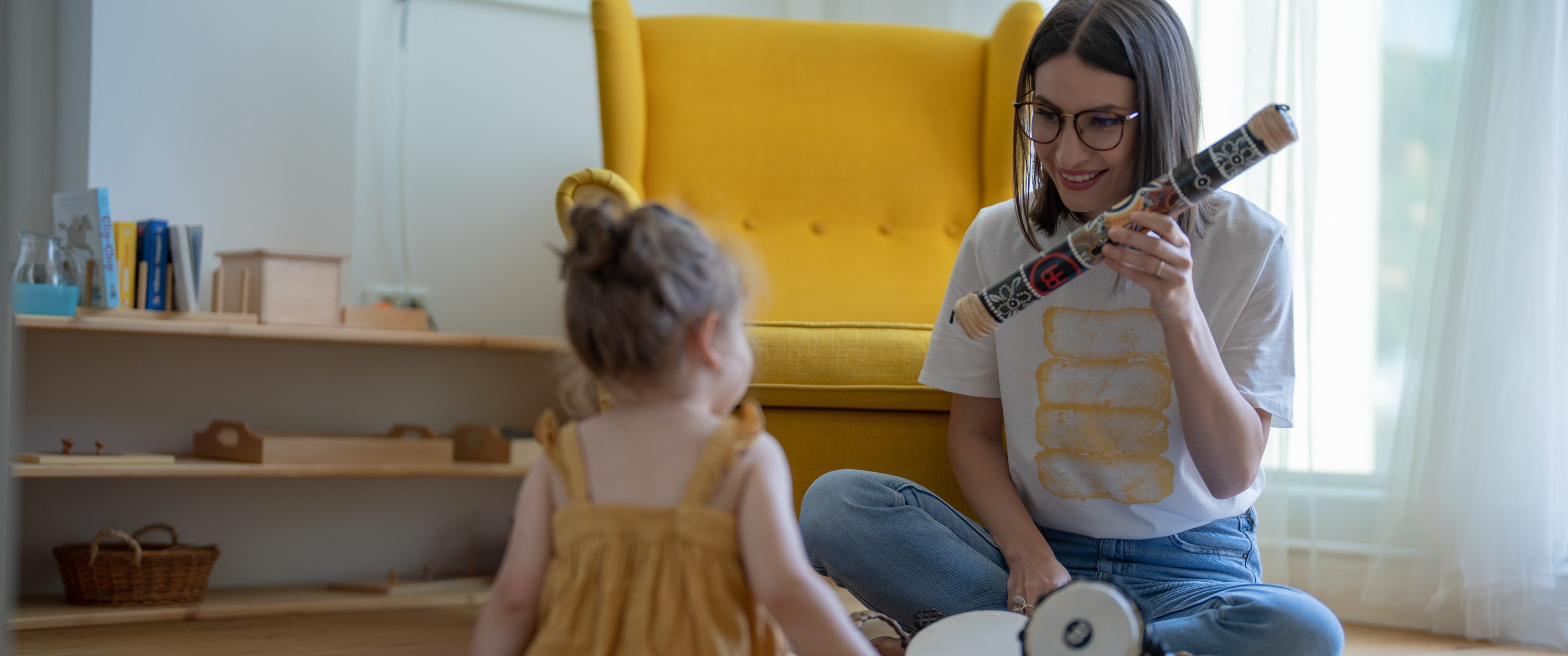 Wallpaper: baby, musical instruments - 3440x1440