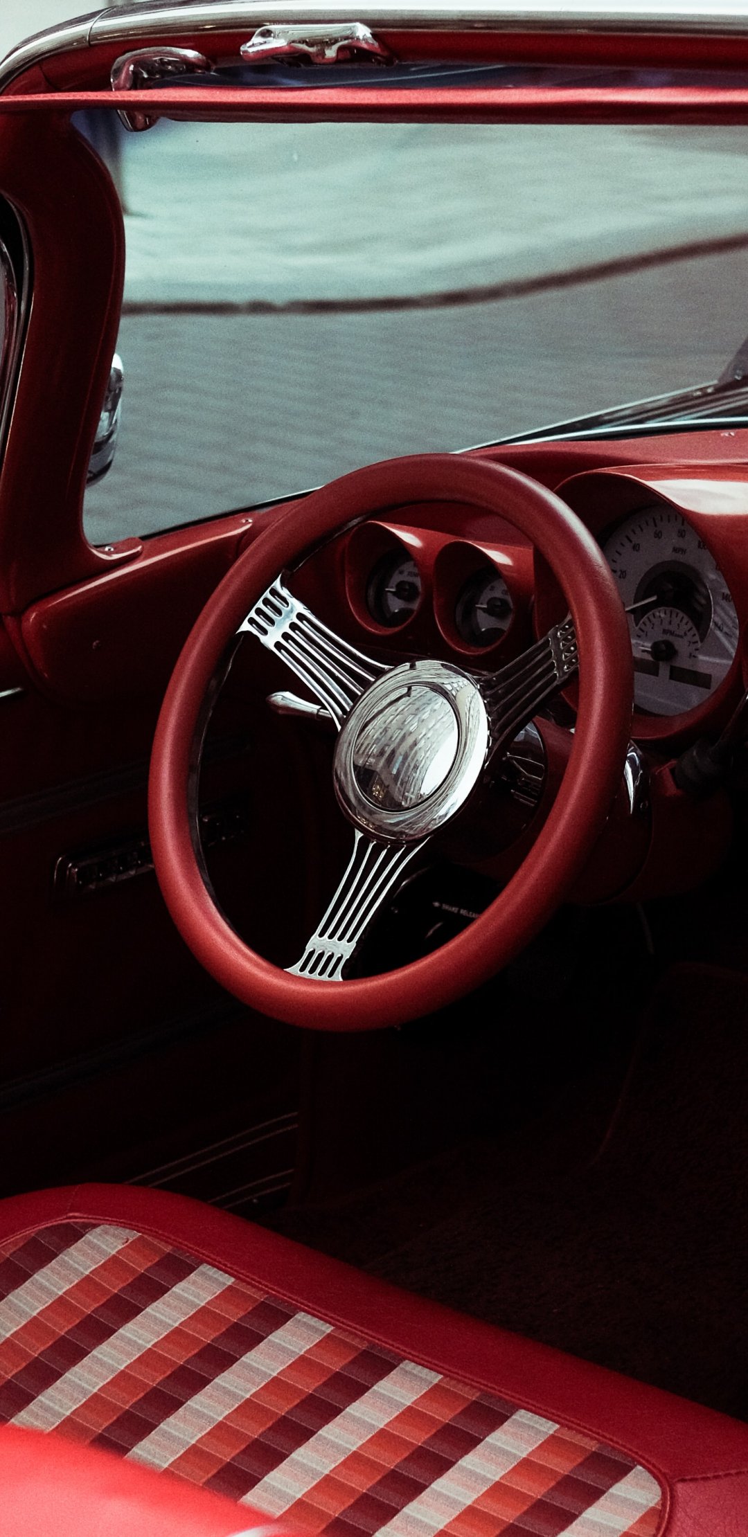 Wallpaper: red retro car - 1080x2220