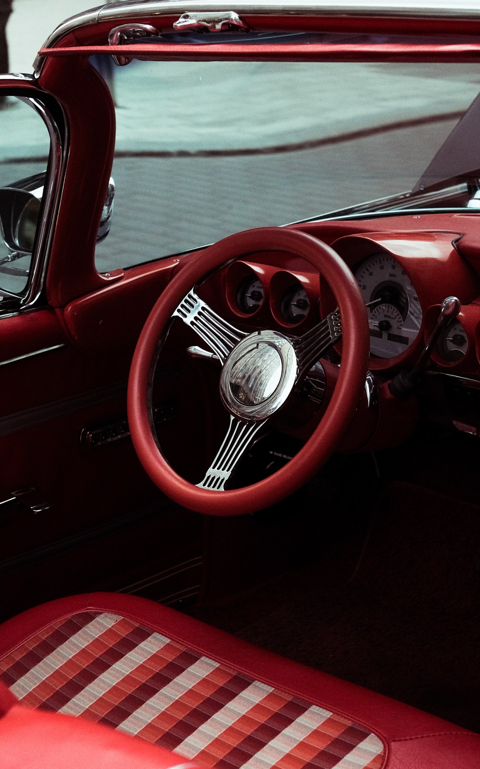 Wallpaper: red retro car - 1600x2560