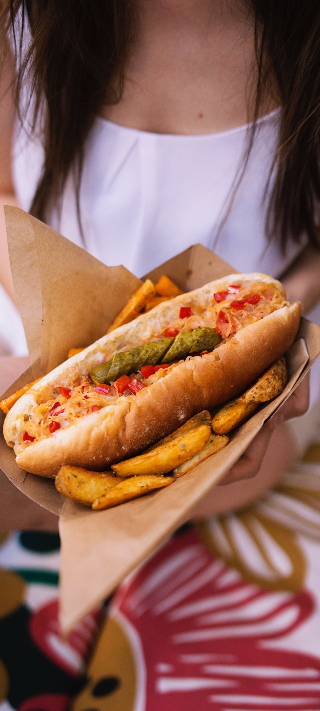 Wallpaper: girl with food - 1080x2400