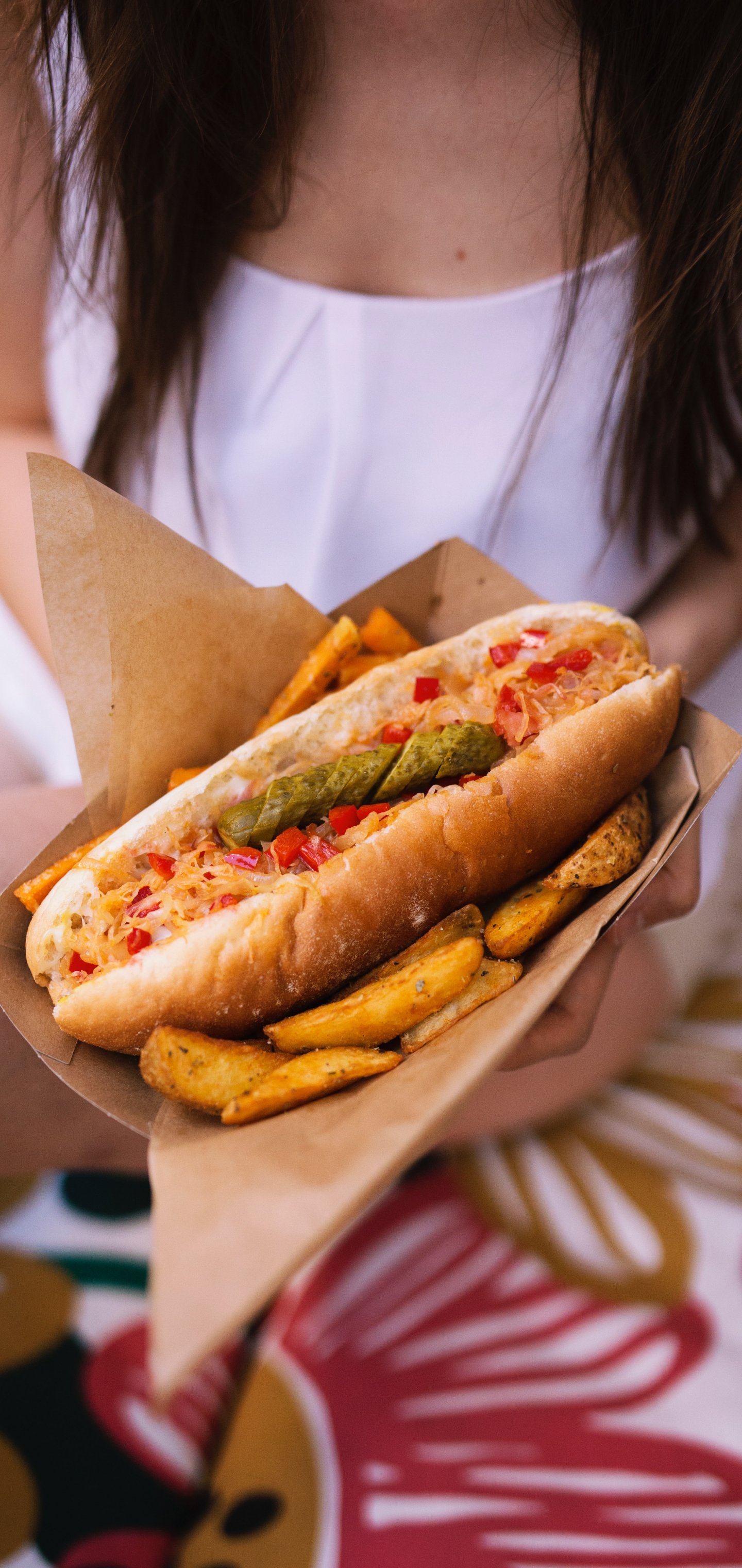 Wallpaper: girl with food - 1440x3040