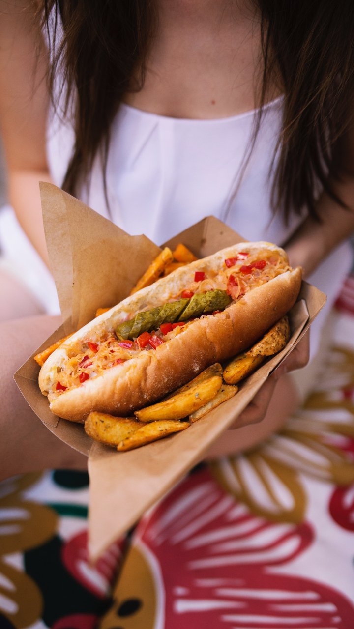 Wallpaper: girl with food - 720x1280