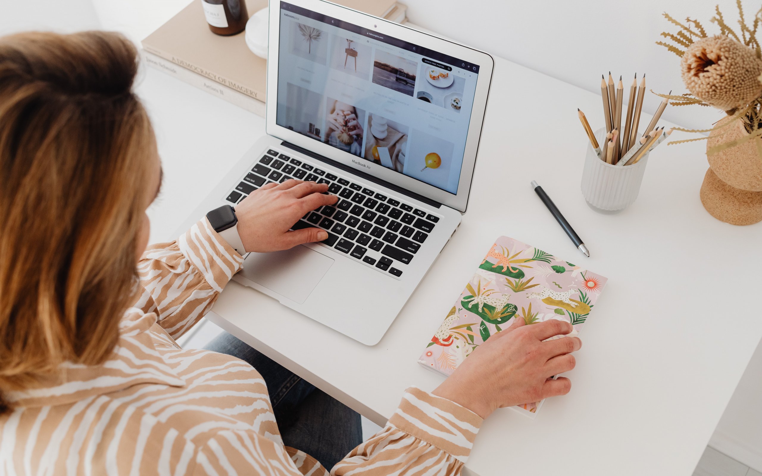 Wallpaper: woman at desk - 2560x1600