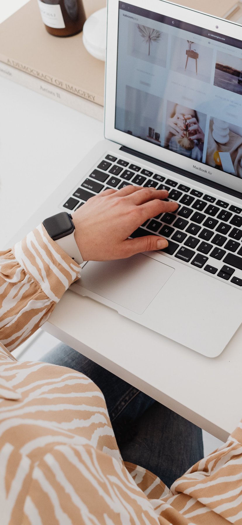 Wallpaper: woman at desk - 828x1792