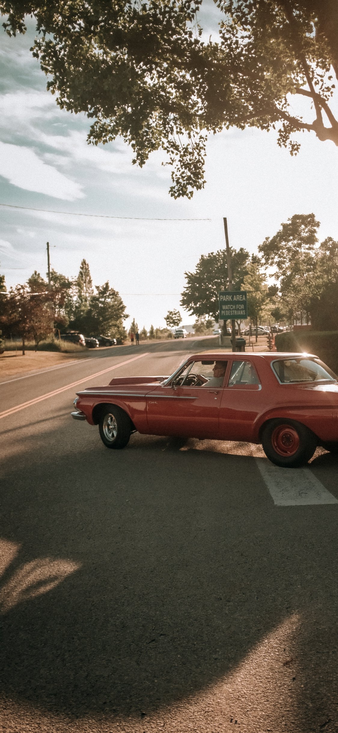 Wallpaper: red car, city - 1125x2436