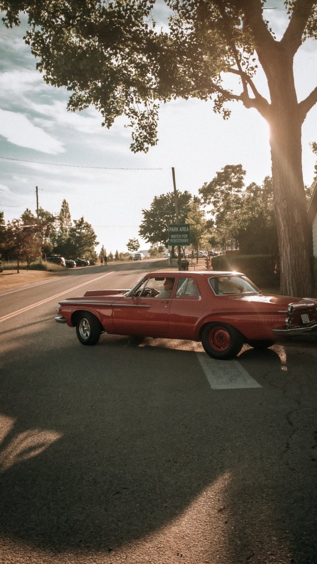 Wallpaper: red car, city - 640x1136