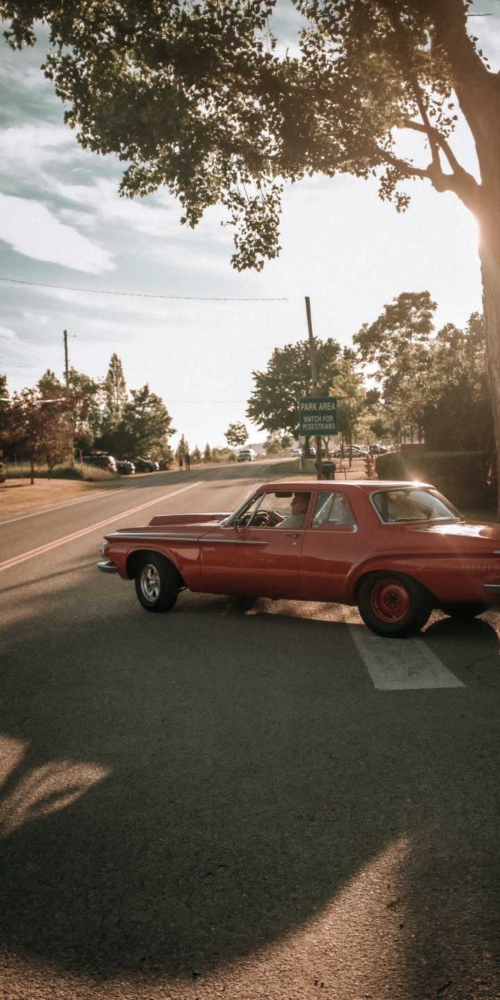 Wallpaper: red car, city - 720x1440